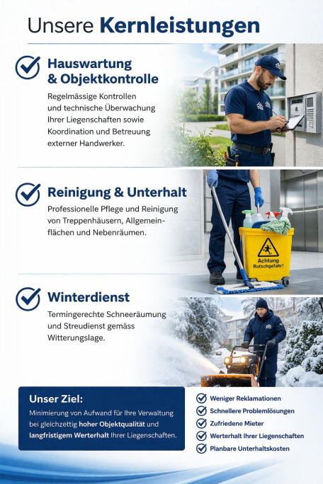 Zuverlässige Betreuung von Liegenschaften – strukturiert, dokumentiert und effizient.